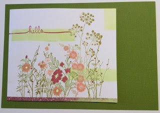 Joan has created a lovely floral meadow scene on her clean and simple style card, using multi-coloured inks: